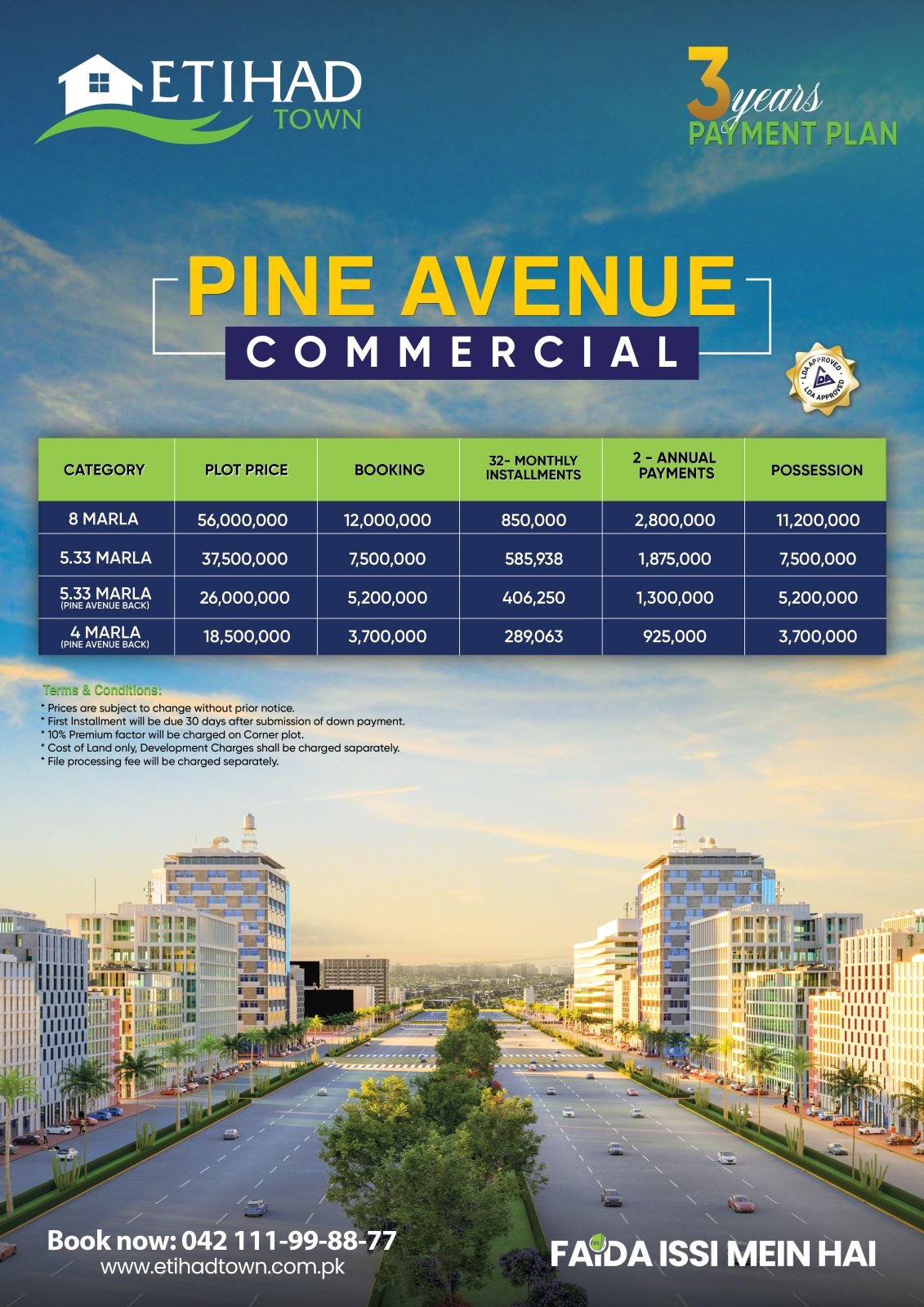 Payment Plan Etihad Town Phase – II Pine Avenue Commercial Plot
